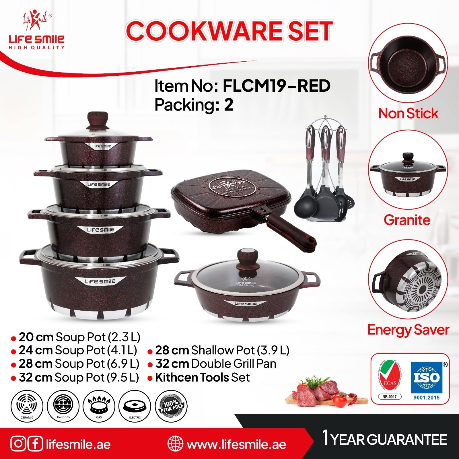 سرویس قابلمه گرانیتی 19 پارچه لایف اسمایل مدل FLCM19