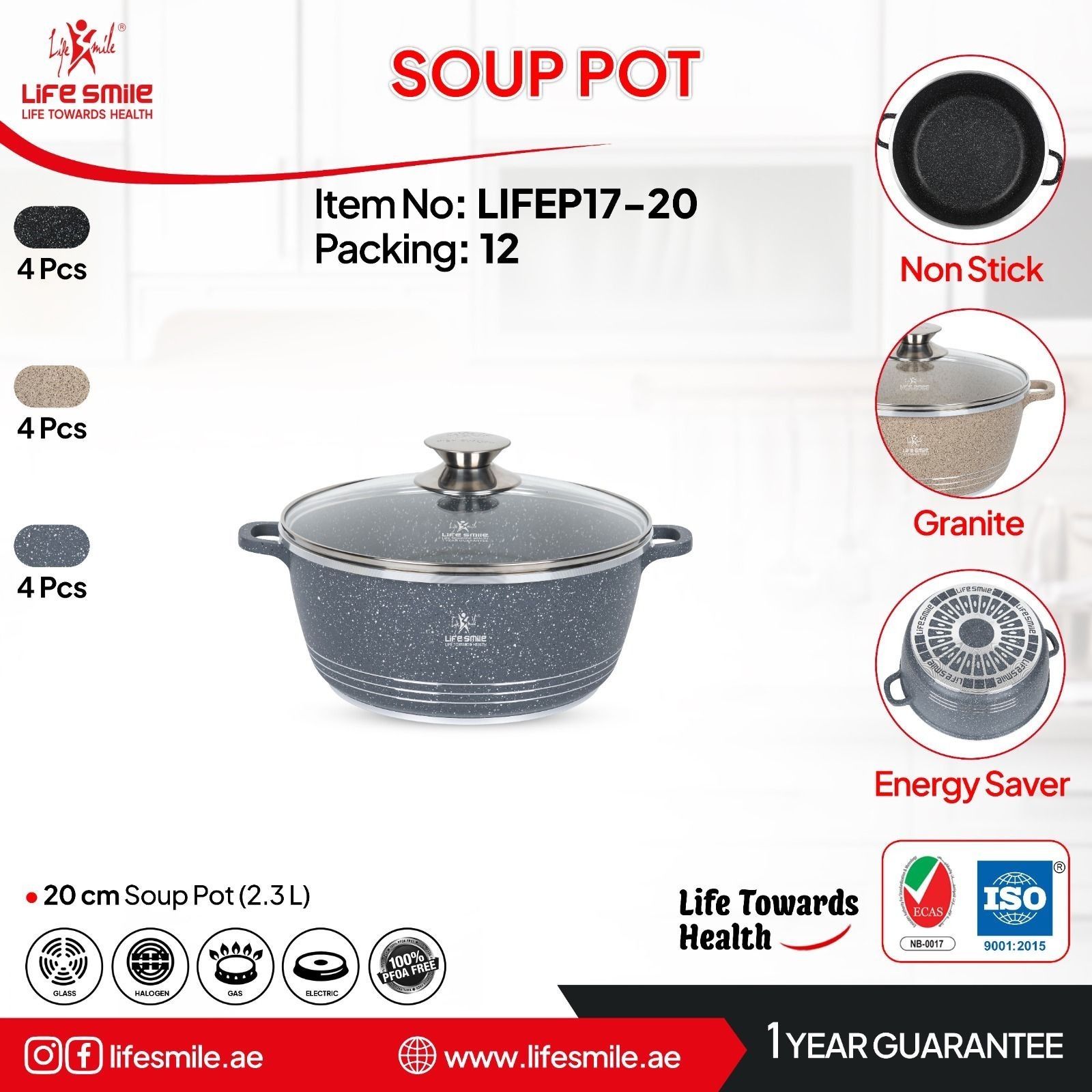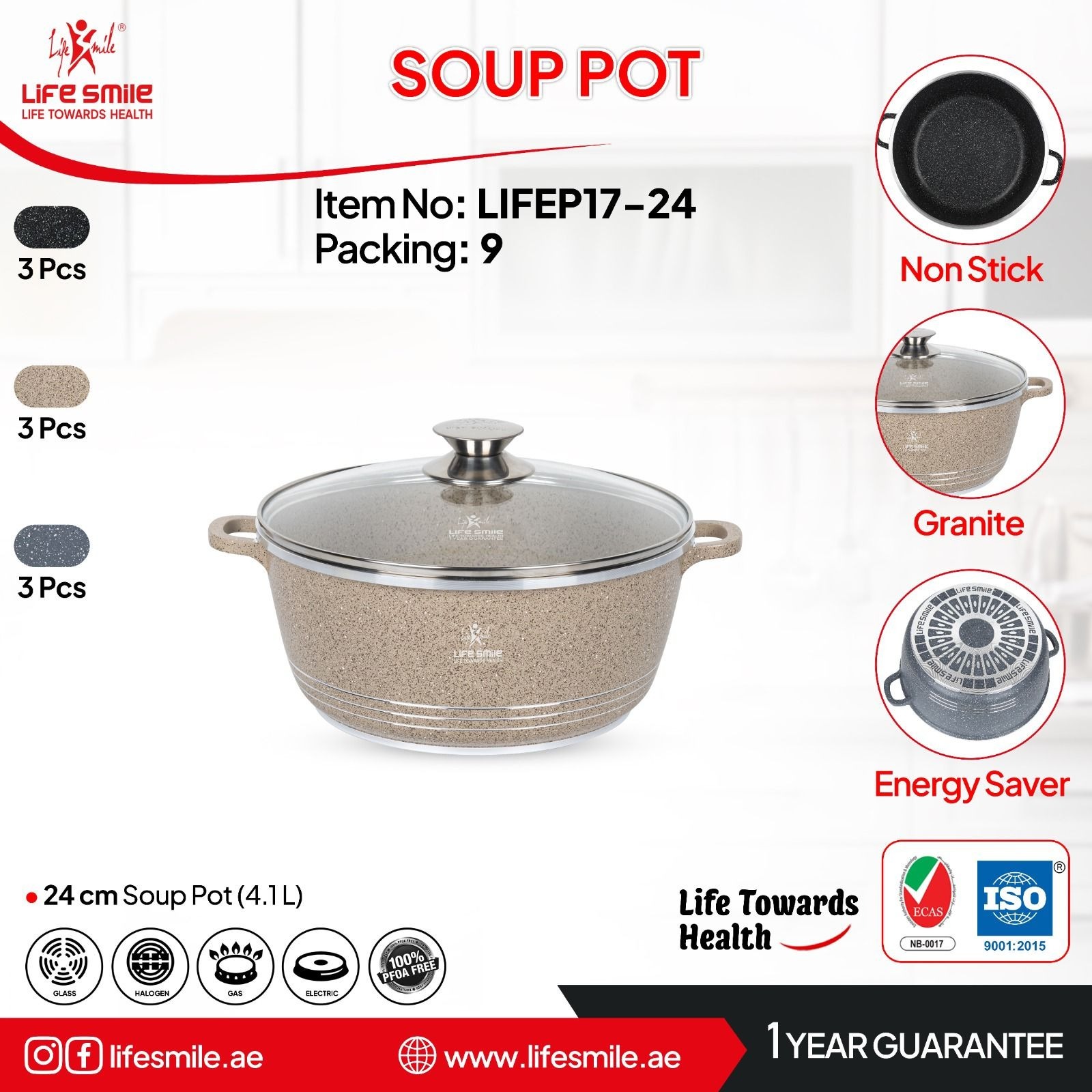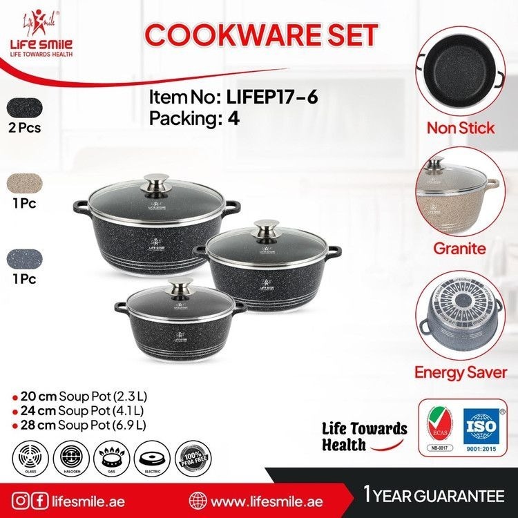 سرویس قابلمه ۶ پارچه لایف اسمایل مدل LIFEP7-6 سایز 20-24-28 یکی از محصولات باکیفیت و پرطرفدار برند Life Smile است که با طراحی خاص، بدنه مقاوم و پوشش گرانیتی نچسب، انتخابی حرفهای برای آشپزی روزمره و مهمانیهای خانوادگی محسوب میشود. این سرویس شامل سه قابلمه در سایزهای 20، 24 و 28 سانتیمتر بوده و با رنگبندی مشکی .بژ و آبی نفتی، جلوهای زیبا و مدرن به آشپزخانه شما میبخشد.