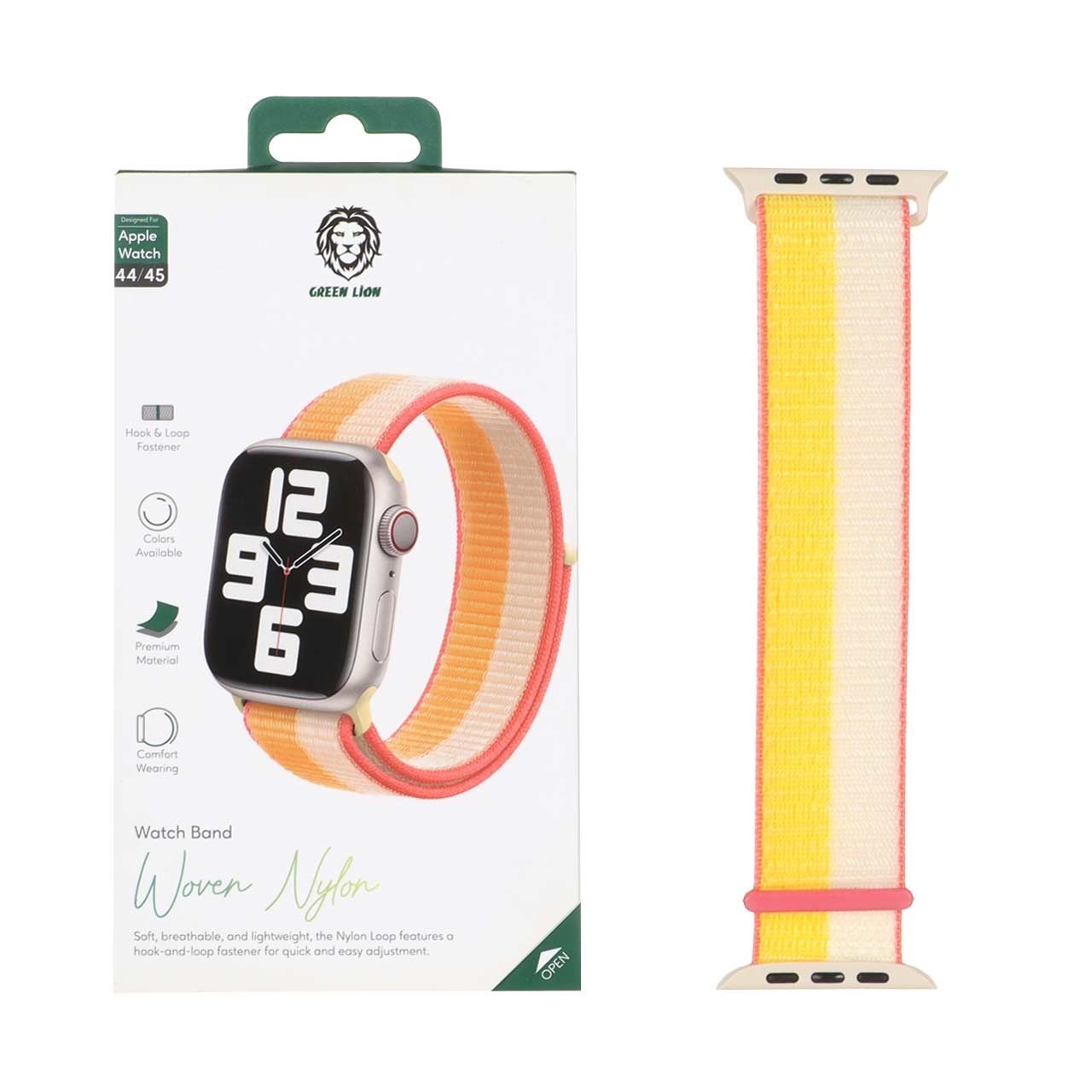 بند اپل واچ Woven Nylon Green Lion سایز 42/44/45/46/49 میلیمتری - سفید زرد (پک دار)